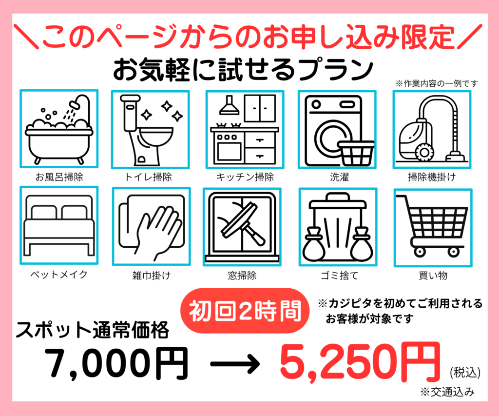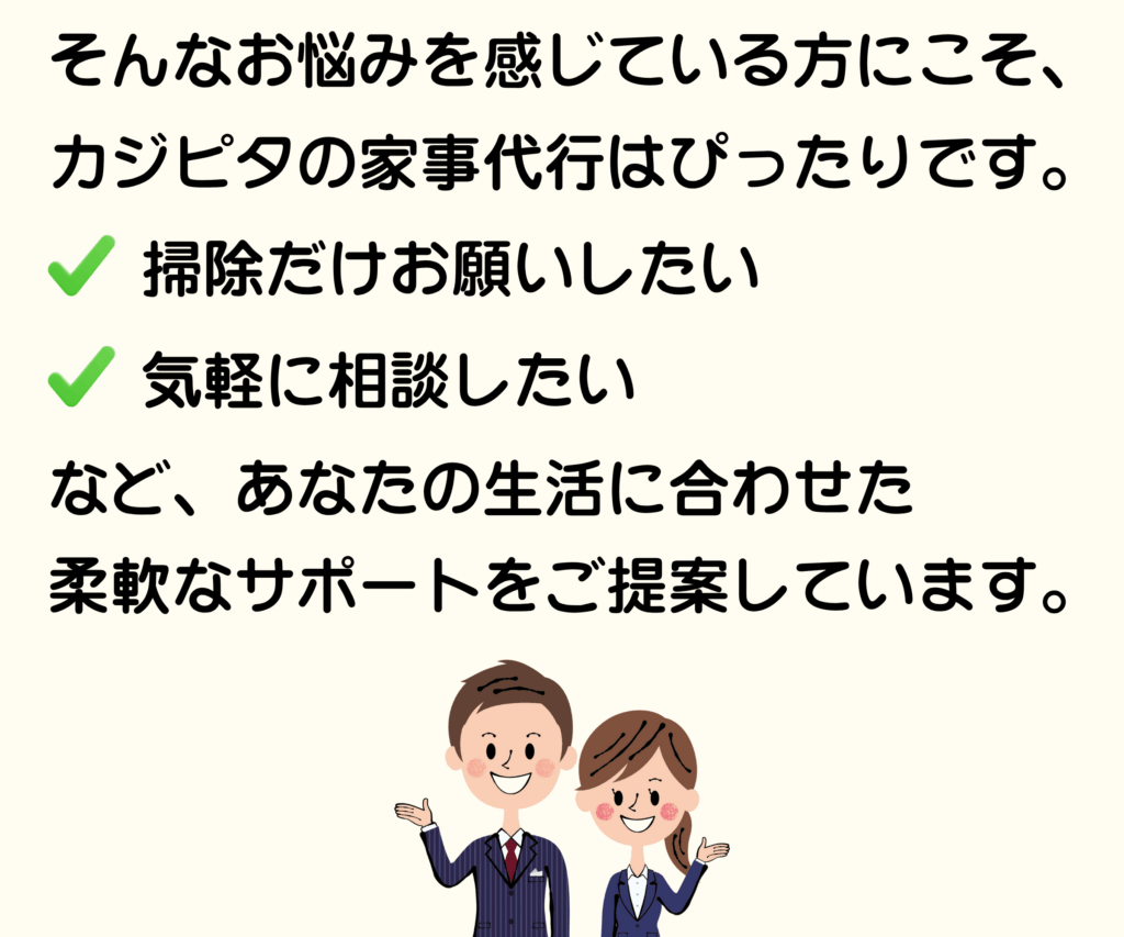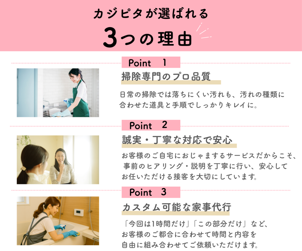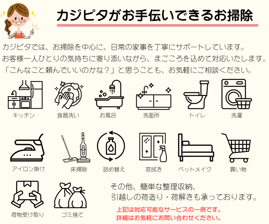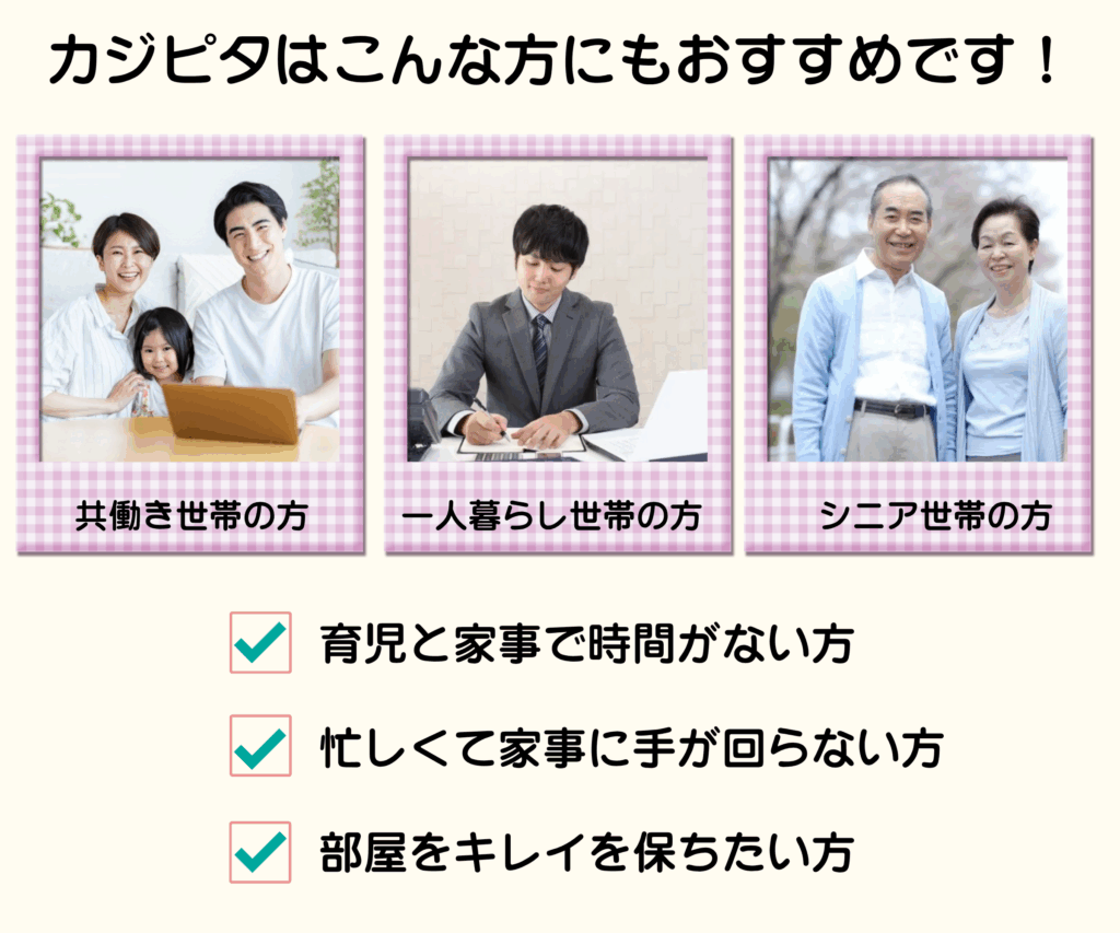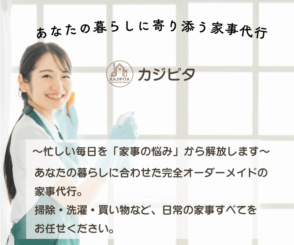 カジピタは、お客様の暮らしに寄り添う「掃除専門」の家事代行サービスです。